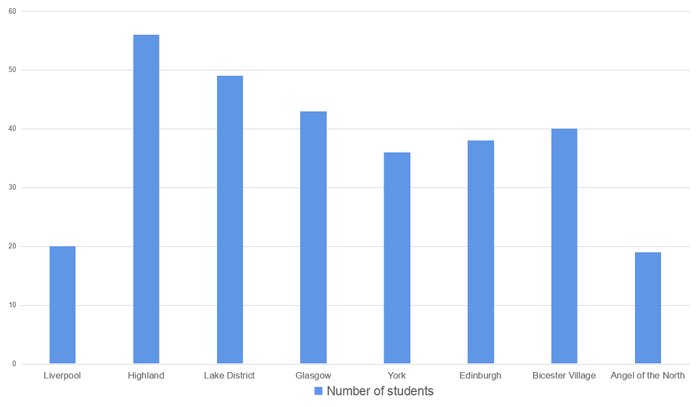 By the survey, the most popular places with the most participants are Highland, Lake District, and Glasgow.As usual, the determination of travel destinations and time are based on seasonal climate and solicitation of interest of students. They can receive the feedback about the trips by questionnaire. If the day-trip project is open, students will be notified by email or social media and they can register by contacting person in charge.